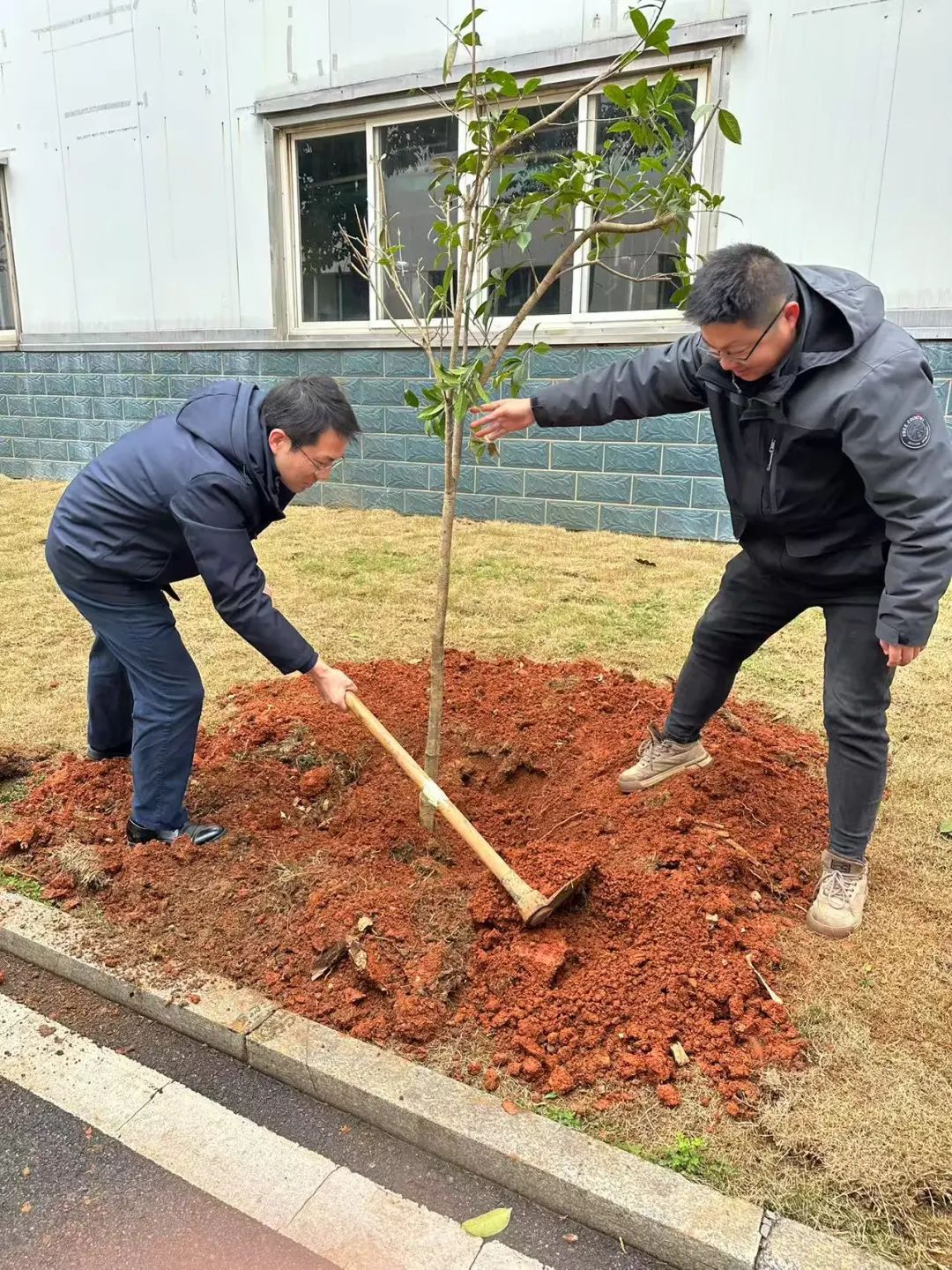 植樹現(xiàn)場,大家干勁十足,揮鍬鏟土、扶苗填坑、培土壓實、提水澆灌.....分工明確、配合默契,現(xiàn)場一片熱火朝天的景象,大家盡情享受著朝氣蓬勃的春意,用自己的雙手和汗水為公司注入新的生機與活力。