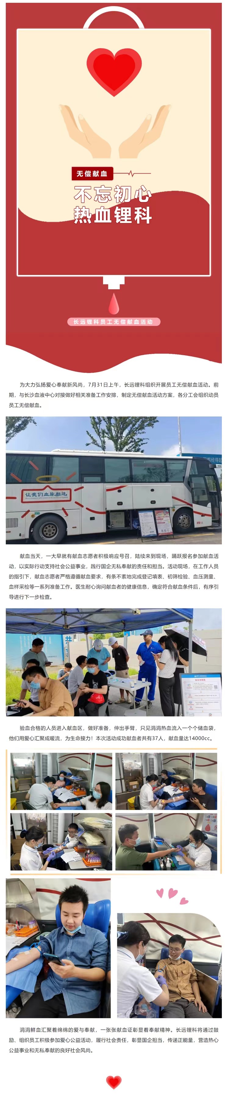 不忘初心 熱血鋰科 —— 長遠(yuǎn)鋰科開展員工無償獻(xiàn)血活動